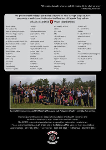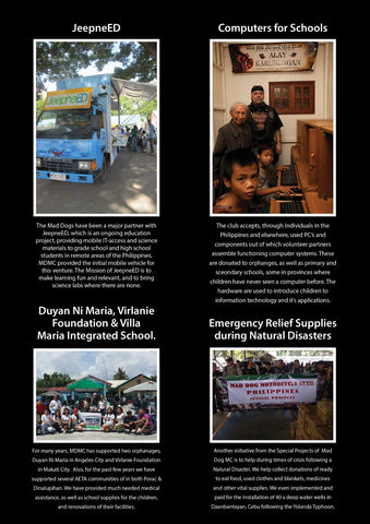 Mad Dog MC supports a number of charities and humanitarian organisations in the countries that we have Chapters.